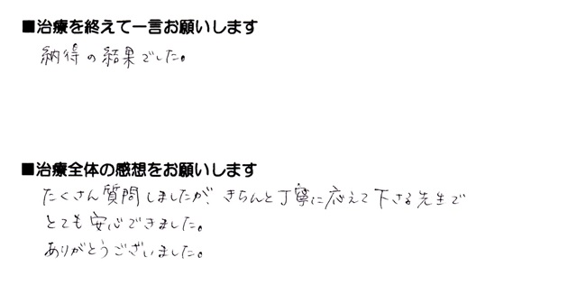 治療を終えて一言お願いします 納得の結果でした。