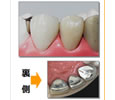 | プラスチック前装冠 | ![]() 銀合金にプラスチックを貼り付けたもの |